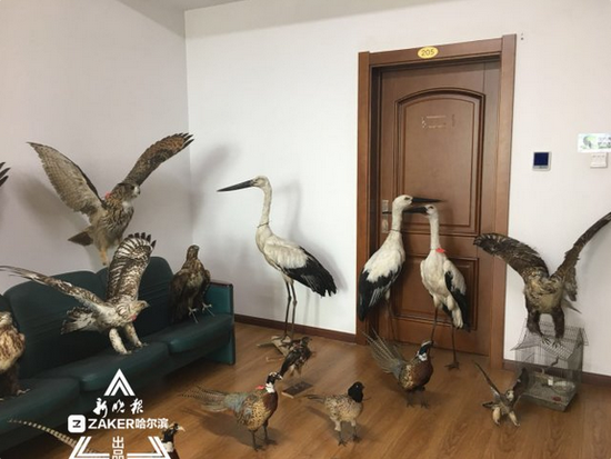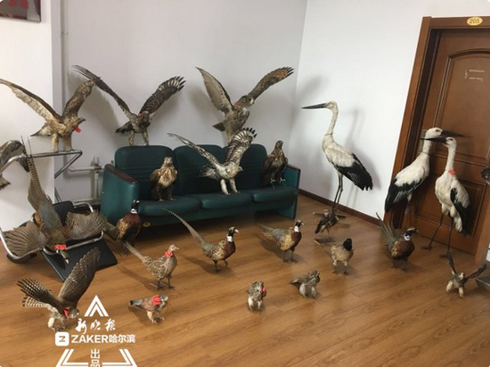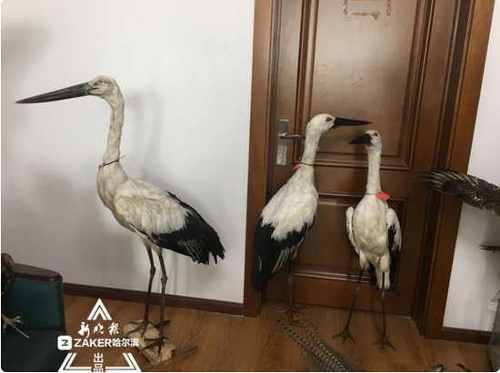 有人爱鸟会观赏,有人爱鸟会饲养,然而,有些人竟然以爱鸟为名,杀死它们做成标本。28 日,哈尔滨市森林公安局发布一起非法猎捕、杀害国家重点保护的珍贵、濒危野生动物和非法收购、出售、运输国家重点保护的珍贵、濒危野生动物及其制品的重大案件。记者在现场看到 20 余个被制成标本的野生鸟类,其中有 3 只属于国家一级保护动物、全球濒危物种的东方白鹳。