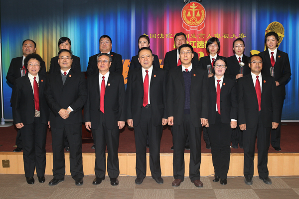 二等奖获奖选手与省法院领导合影。朱丹钰 摄