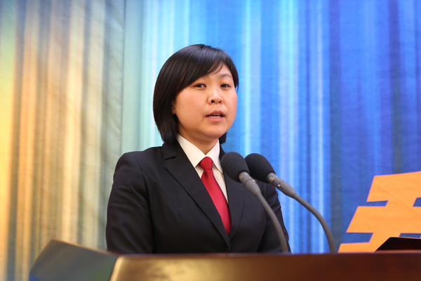 “您好,首先感谢媒体朋友们对法院的关注和监督,我先来回答您的第一个问题……”哈尔滨中院的新闻发言人王梦薇面对记者们的三连问从容应对,不卑不亢,赢得了评委的阵阵掌声。