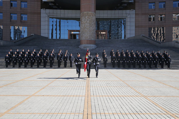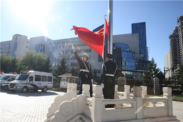 省法院法警总队及直属支队、哈尔滨、农垦、林区和铁路法院司法警察参加了升旗仪式。