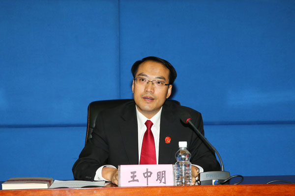 省法院审判委员会专职委员王中明作新闻发布。朱丹钰 摄