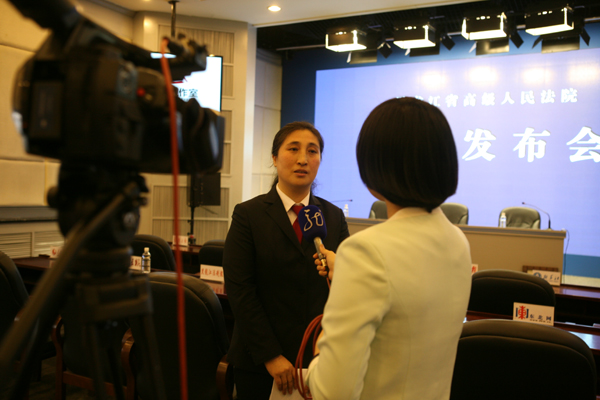 省法院民三庭庭长才桂平接受省电视台记者采访。陈凡 摄