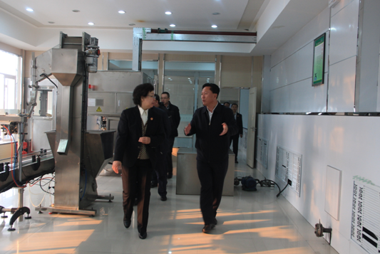 东粮集团董事长、全国人大代表翟友财向吴蕴欣介绍集团企业情况