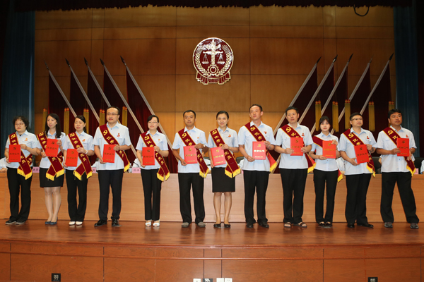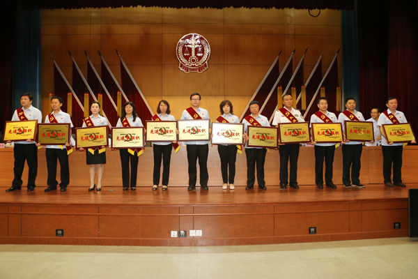 省法院党组书记、院长石时态为先优代表颁奖。朱丹钰 摄