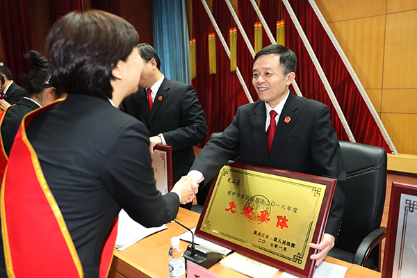 省法院党组书记、院长石时态为获奖代表颁奖。朱丹钰 摄