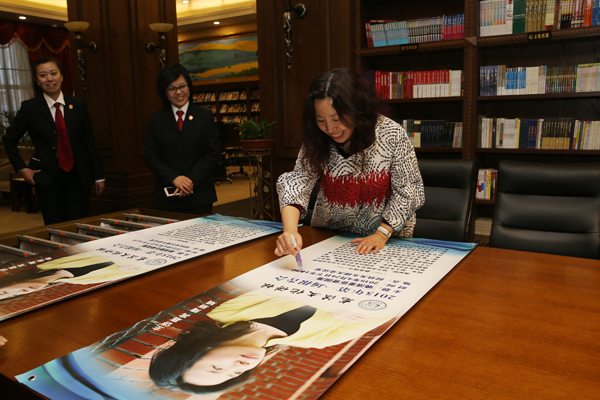 隋丽娟教授为省法院图书馆签名留念。朱丹钰 摄