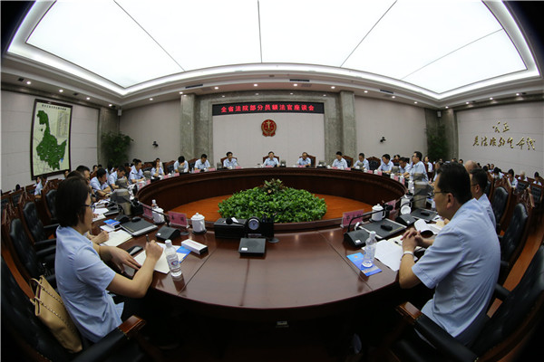 8月15日上午,省法院召开全省法院部分员额法官座谈会,来自全省法院各条战线今年以来办案质效排在前列的30名员额法官参加座谈,就不断提升审判质效、切实维护司法公正进行交流。省法院党组书记、院长石时态要求,全省法院干警要坚持以习近平新时代中国特色社会主义思想为指引,以办案能手为榜样,学习、发扬他们身上体现出来的五种时代精神,坚持司法为民公正司法,全面提升审判质效,努力推动我省法院各项事业不断前进。