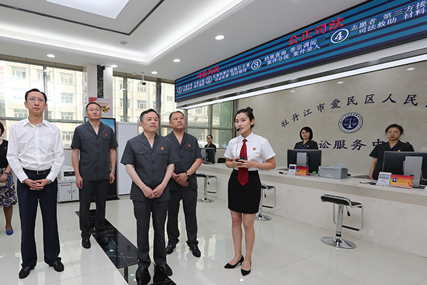 视察牡丹江市爱民区法院诉讼服务中心。朱丹钰 摄