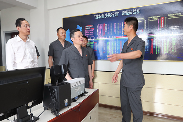 视察穆棱市法院执行指挥中心。朱丹钰 摄