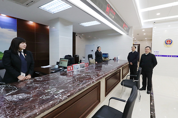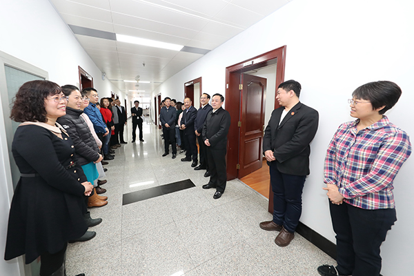 石时态院长到诉讼服务大厅看望全体工作人员。朱丹钰 摄