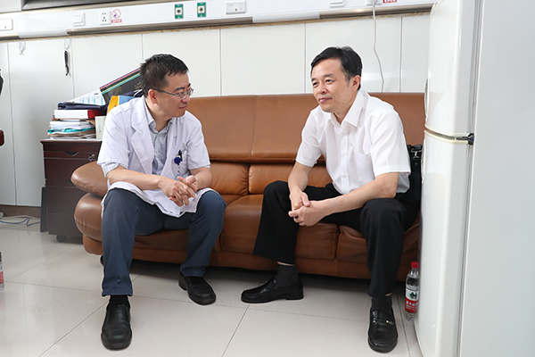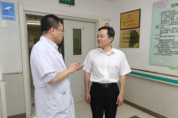 石时态院长在住院部听取情况介绍。朱丹钰 摄