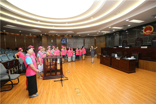 7月25日,哈尔滨市新春办事处泰山社区的党员群众一行19人到省法院参加“公众开放日”活动,了解审判流程,感受法院文化。
