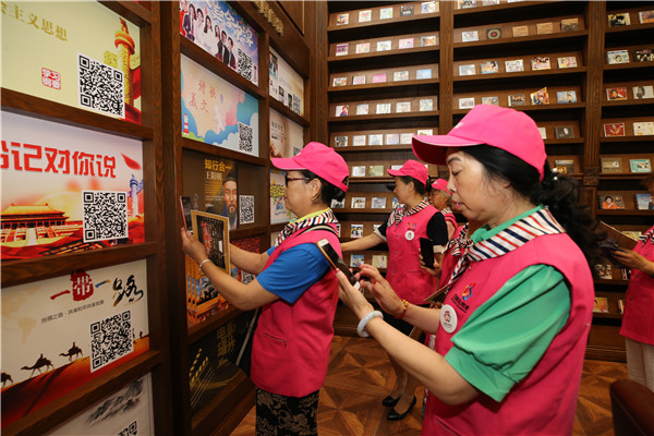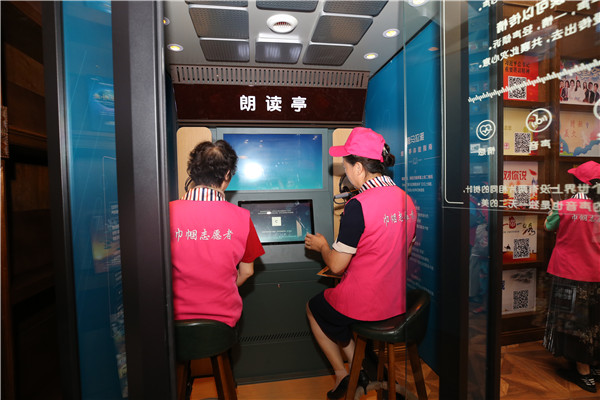 在数字图书馆的有声阅读空间,参观者用手机扫描二维码收听喜爱的有声读物,并走进朗读亭感受朗读声音的魅力。