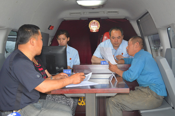 6月11日,穆棱市法院巡回审判庭到下城子镇悬羊村处理土地使用权纠纷案件,巡回法官向双方当事人告知了诉讼权利和宣布了法庭纪律,并在巡回审判车内审理原告刘某与被告李某土地使用权纠纷案件。