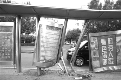 记者赶到现场时,伤者已经被120急救车送往医院,肇事车辆也正在被拖车拖走。记者看到,此处是淮河路(红旗大街路口)的公交站台,公交长廊的多跟立柱已经被撞弯,广告牌与公交牌也发生倾斜,地面上有少量血迹。