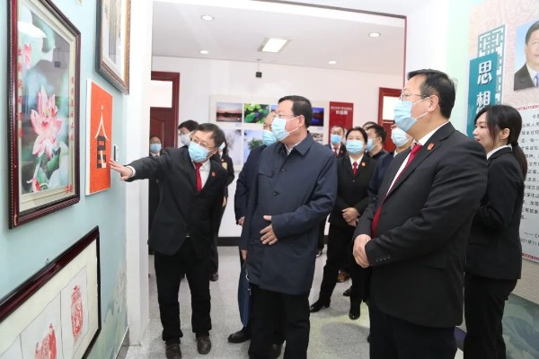 在书画文化长廊,绥化中院院长为大家介绍了中院干警原创书法、绘画、摄影作品和绥化市书画家协会书画家赠与本院的作品。廉政教育长廊中的一句句名言警句和富有警示意义的手工艺品,让大家感受到了中院浓郁的廉政建设文化氛围。