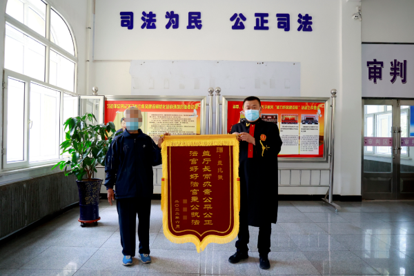 “盖庭长常办案公平公正,法官好好法官秉公执法”!近日 ,绥棱法院收到袁大爷送来的一面锦旗,表达对民事审判庭法官工作的肯定与感谢。