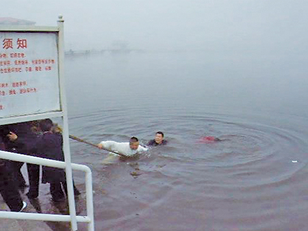 “快来救人啊,有人落水了……”绥芬河法院法官单国勇的妻子的一声呼喊划破了清晨的静寂。听到急促的喊叫声,在绥芬河北海公园晨练的华武太极拳学员们立即寻声向湖边跑去,参与救人行动。