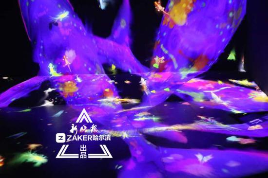 蝴蝶飞舞 冰城老街添了“花涧追光”光影艺术展
