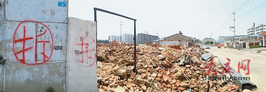 6月23日,记者赶到肇州县城。在县城的文化街与西环南路交叉口,就能看到街一侧的平房,有的墙上写着红色的“拆”字,有的已被扒成废墟。