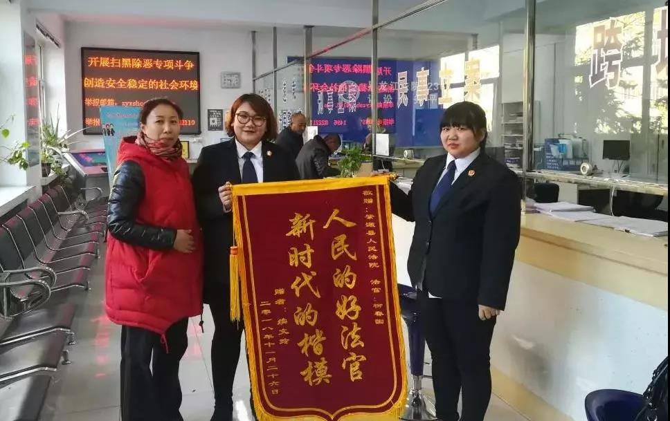 近日,在肇源县法院诉讼服务中心,当事人续某将一面锦旗送到了立案庭庭长柳春国手中,对他及诉讼服务中心干警的辛苦付出表示感谢。