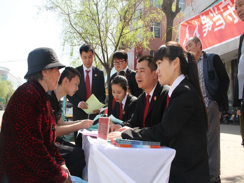 “贸易大厦门前这条街,是虎林市人流量最多的街道之一。每次宣传,来咨询的人都特别多。”审监庭的韩明已经多次参加普法活动,“看到群众解开烦恼,心满意足地离开,很有成就感。这种成就感极大的鼓舞了我们这些青年法官的斗志!”
