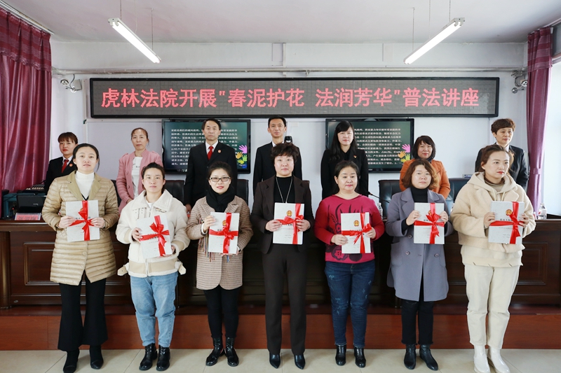 随后,虎林法院举办“春泥护花 法润芳华”普法讲座,虎林法院党组书记、院长沙云凯、副书记褚廷友、市妇联党组书记、主席王蕙、副主席李京华、副主席王春梅和三级女干部30余人出席此次普法讲座,并分别作了讲话。