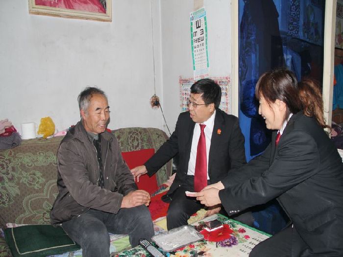 当众人坐在老人简陋的屋子里时,人们的心是酸的。孙主任和王法官耐心的安慰着老人,说了王帅和李艳积极表现,争取减刑的好消息。并把事先准备好的慰问金交给老人,嘱咐他若是生活上有困难,就来院里找他们,能帮上忙的,大家一定有钱出钱,有力出力。聊天中,老人笑着说,“谢谢你们一直以来对我们这一家子的关心,我真的非常的感谢!真的,非常的感谢!”