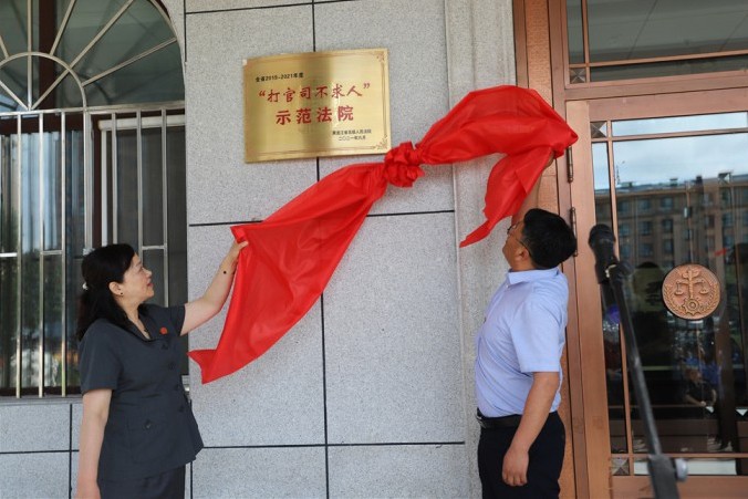 按照省法院同步授牌的工作要求,7月8日上午,嘉荫县法院举行“打官司不求人”示范法院揭牌仪式。