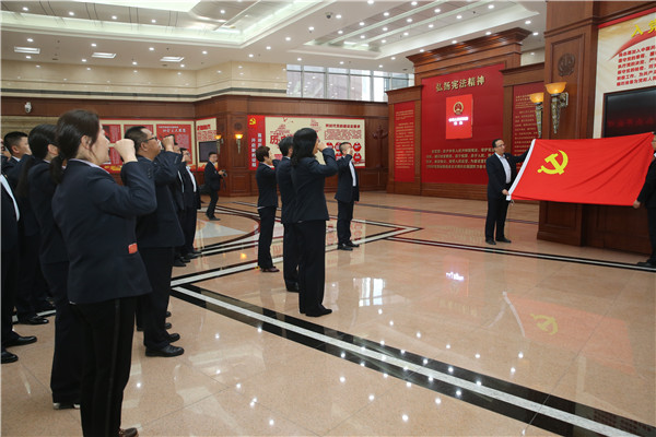 在党建大厅,中国银行哈尔滨开发区支行的党员干部面向党旗,高举右拳,庄严宣誓。“党建大厅内容丰富,收获颇多,值得学习。”一位参观者表示。