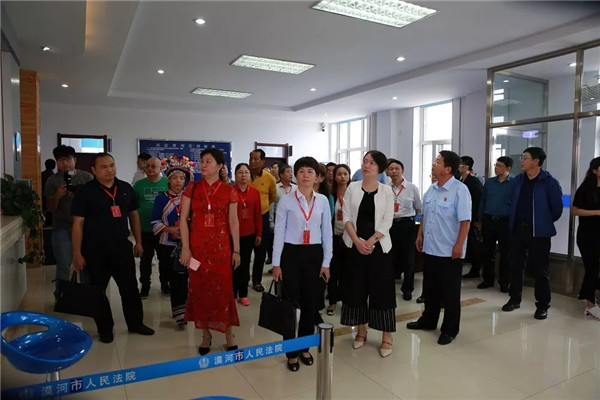 随后代表们来到漠河法院参观了法院诉讼服务中心、廉政长廊、院史馆和党员活动室,并现场观摩了一起案件庭审。