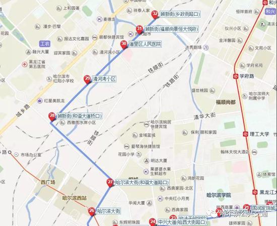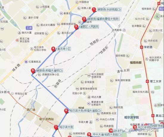 增设顾新街(乡政街路口)站、顾新街(福顺尚景恒大悦府)站、道里区人民医院站、清河湾小区站、顾新街(和谐大道桥口)站、哈尔滨大街(和谐大道路口)站。
