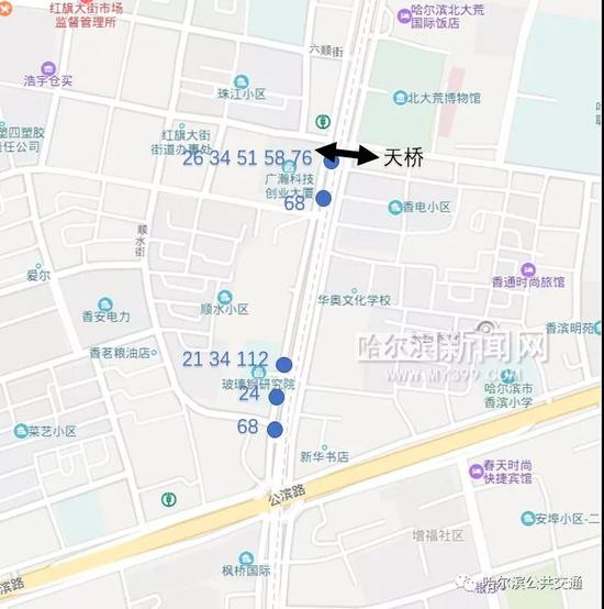 另外,西行方向的“红旗大街(公滨路路口)”站,58路停靠,68路不停靠。