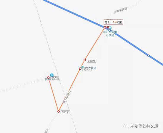 从哈尔滨大街开始,途径哈西大街、北兴街至哈尔滨银行对面终点。