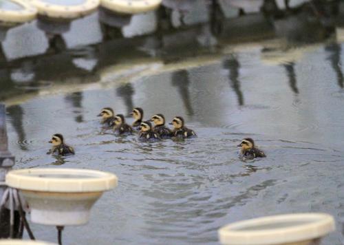 劲彪新闻5日讯(记者 张澍 文\摄)4日,哈尔滨道里区园林管理局金河公园的喷泉水池中,出现8只小野鸭,这让公园工作人员颇感意外。