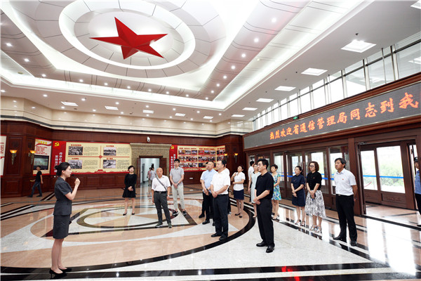 8月6日,黑龙江省通信管理局党组成员、机关党委副书记、纪检组长、副局长梁作君带领17名党员干部来到省法院,开展“不忘初心、牢记使命”主题教育活动。省法院党组成员、副院长姚绪庆陪同参观。