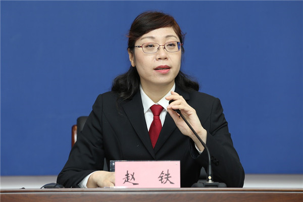 新闻发言人、宣传信息处处长赵铁主持发布会。陈凡 摄