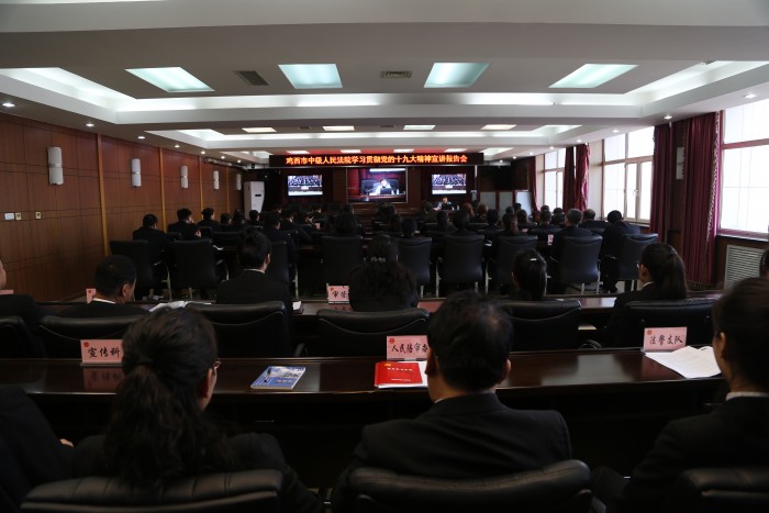 为深刻理解、准确把握党的十九大精神,切实把思想和行动统一到党的十九大确定的各项决策部署上来,鸡西市中级人民法院于11月9日,举办党的十九大精神宣讲报告会,邀请市委讲师团副团长曲洪波教授来院作专题辅导。政治部主任高国滨主持会议,全市两级法院领导班子成员、部门负责人及部分干警参加了培训。