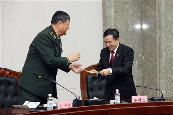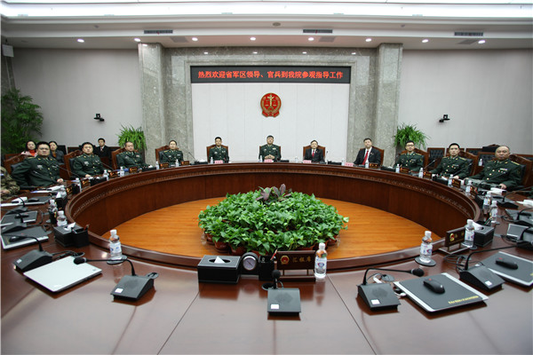 省军区副司令员孙会兵说:“首先对石院长、罗局长和省法院的周密安排表示由衷的感谢。多年来,高院对省军区给予了很多支持和帮助。通过这次参观学习,我们也能够感受到高院的‘互联网+’、大数据等信息化建设很超前,具有前瞻性。石院长开庭审案,也让我们感受到了大法官风范,我们也要学习法官们的敬业精神。”