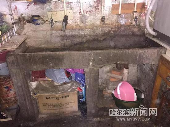 老人们把记者领进了公共厨房, 当年一间厨房六家人使用,现在也是几家人共用,这种“亲昵”,没住过家属区、筒子楼的人没法理解 。这间厨房里的水池,竟然还是当年的水磨石槽子;厨房一角,闲置的烧煤老灶还在,锈迹斑斑的炉门上有俄文。