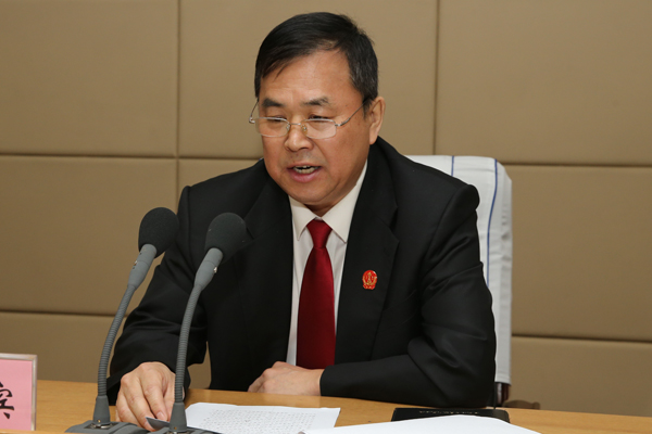 省法院副厅级审判员李海滨传达最高院精神。朱丹钰 摄