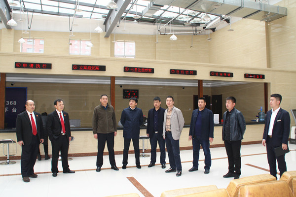 图为金融部门领导、种植户及管理区干部参观诉讼服务大厅
