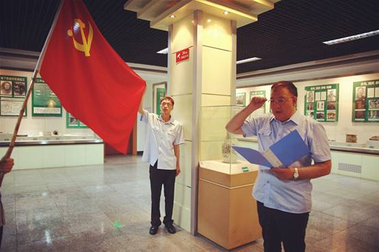 佳铁法院党组书记、院长佟明义带领全体党员在党旗下庄严宣誓,重温了入党时对党许下的诤诤誓言,思想在响亮的宣誓声中得到深度洗涤,进一步增强了党员干警的神圣感、责任感和使命感。