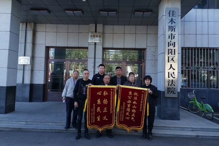 9月23日,5名当事人来到佳木斯市向阳区法院,代表9户申请执行人向佳木斯市向阳区法院执行局赠送了两面锦旗,感谢法官心系民生、公正执法。