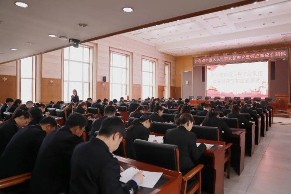 为推动政法队伍教育整顿走深走实,检验伊春中院广大干警和其他工作人员学习成效,进一步强化巩固学习教育成果,3月29日,市中院组织机关全体工作人员进行法院队伍教育整顿应知应会知识测试。