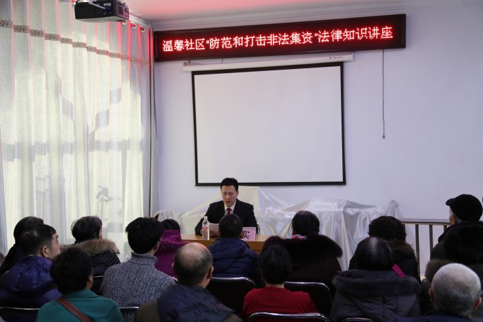 法院干警通过为居民介绍非法集资的主要特征、涉及罪名、常见手段及危害等,生动讲解了防范和打击非法集资相关的法律法规。同时以非法集资造成的家破人亡的典型案例提醒辖区居民远离非法集资,不要贪图一时的小利给自己和家庭造成不可挽回的损失。之后,干警同参与讲座的社区居民进行了互动,并回答了大家关心的法律问题。
