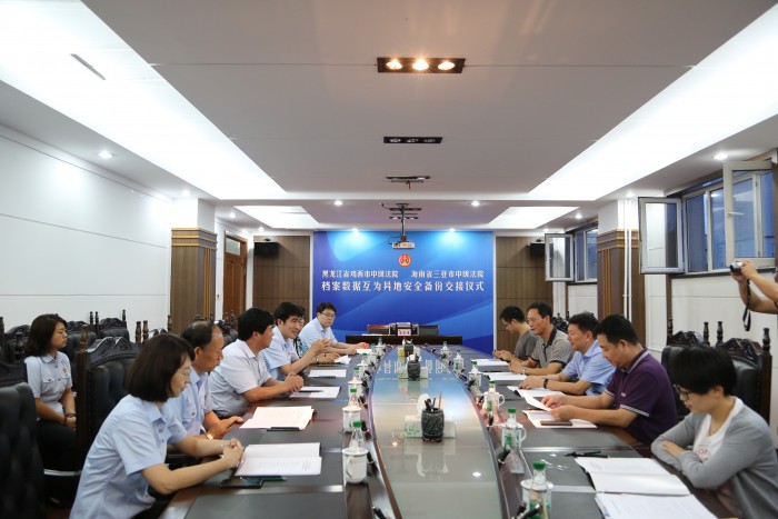 为加强新形势下重要档案的安全管理工作,充分保障档案资源特别是电子档案数据的完整和安全,2017年8月7日,在黑龙江省高院和海南省高院的共同见证下,鸡西中院与三亚中院在鸡西中院四楼会议室举行了档案数据互为异地安全备份交接仪式,鸡西中院成为黑龙江省法院系统第七家完成法院电子档案异地备份工作的单位,此次活动标志着鸡西中院和三亚中院之间重要档案数据异地备份工作的全面启动。