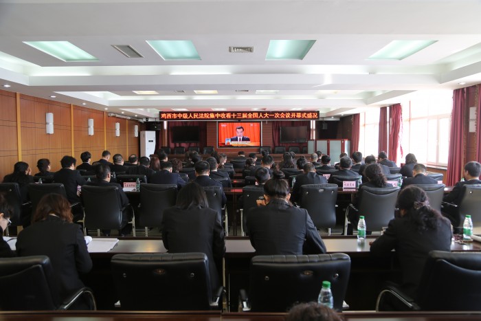 鸡西市中院党组组织全市法院干警集中收看第十三届全国人民代表大会第一次会议开幕式
