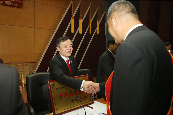 高院党组书记、院长石时态为全省法院先进集体和先进个人代表颁奖 陈凡 摄