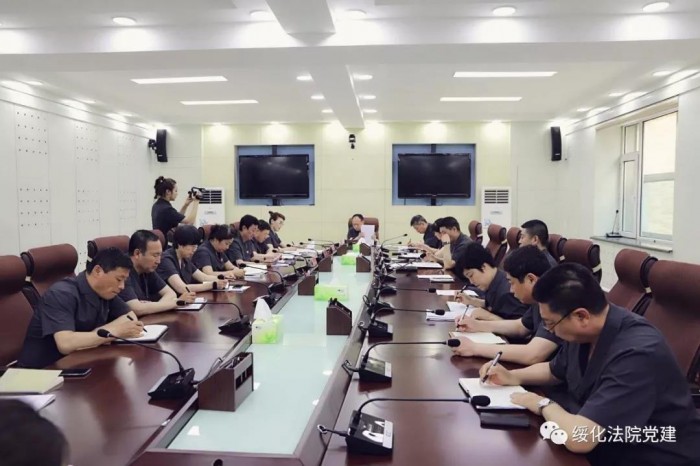 6月14日下午,绥化中院召开会议,学习习近平总书记在“不忘初心、牢记使命”主题教育工作会议上的重要讲话精神。党组书记、院长马国主持会议,中层正职以上领导干部参会。